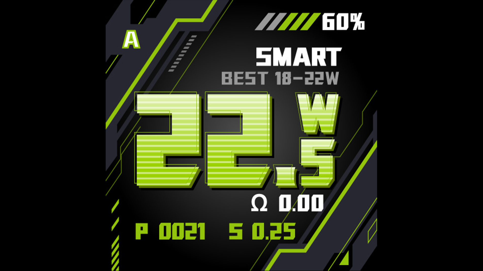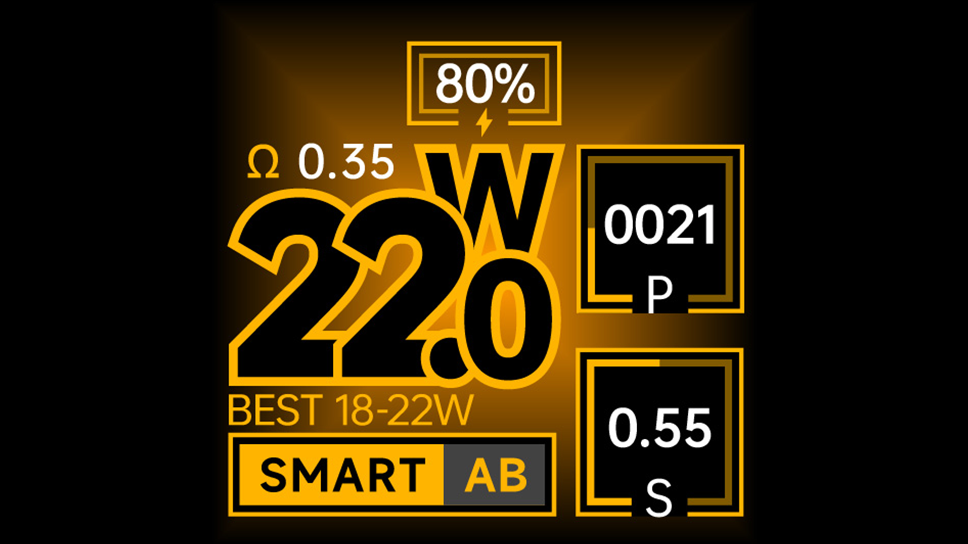 标准版以黑、黄为主色调,高对比度凸显数据。字体厚重、硬朗数据排版规整且突出,营造出专业、精准的电子设备显示质感,契合电子烟产品强调性能参数的需求。