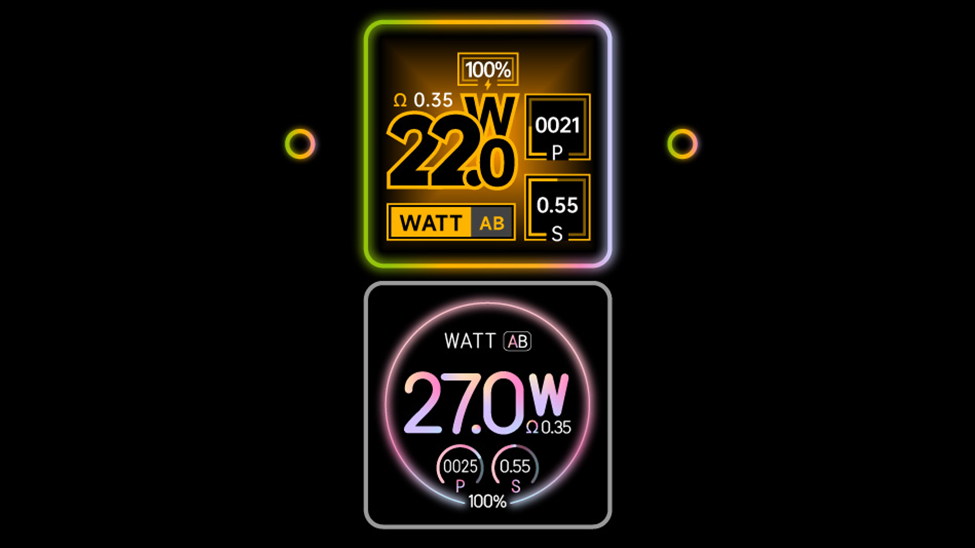 女性版以圆形霓虹光效为视觉核心,渐变色彩柔和且富有流动感融入时尚炫彩元素,营造出潮流、精致的电子设备显示氛围契合电子烟追求个性的定位。