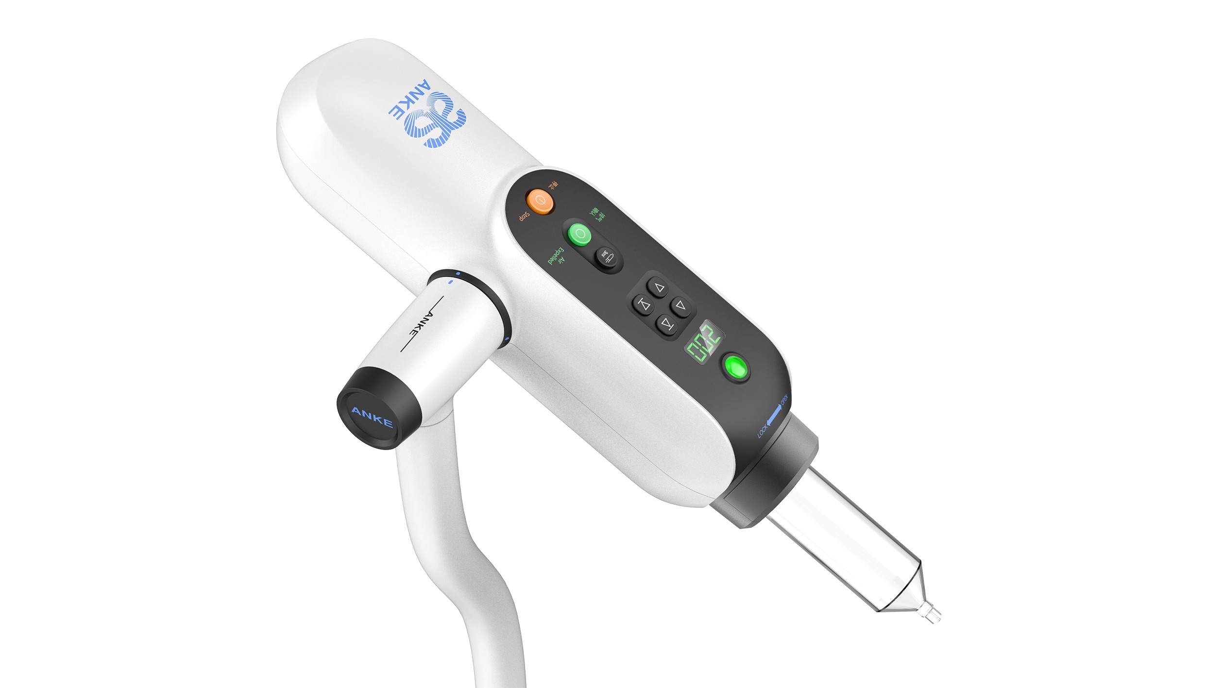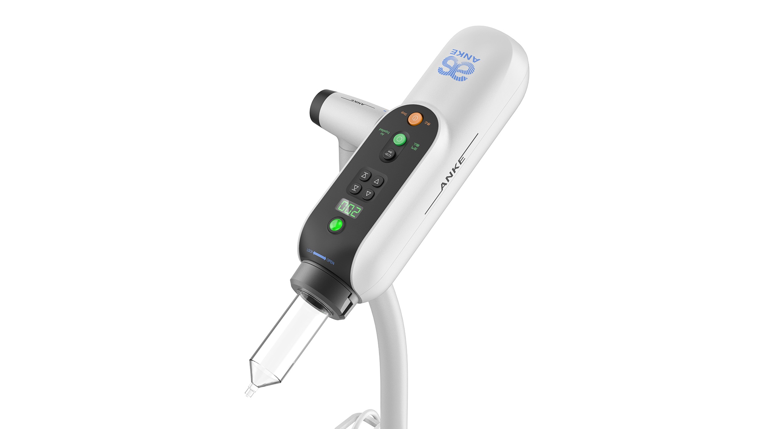 安科 ANKE 高压注射器 ASA-200E 外观以实用便捷为核心,适配医疗场景。整体轻量化,线条简洁,医用级外壳抗污易清洁。操作界面清晰,大屏配差异化按键,指示灯直观,减少误触。