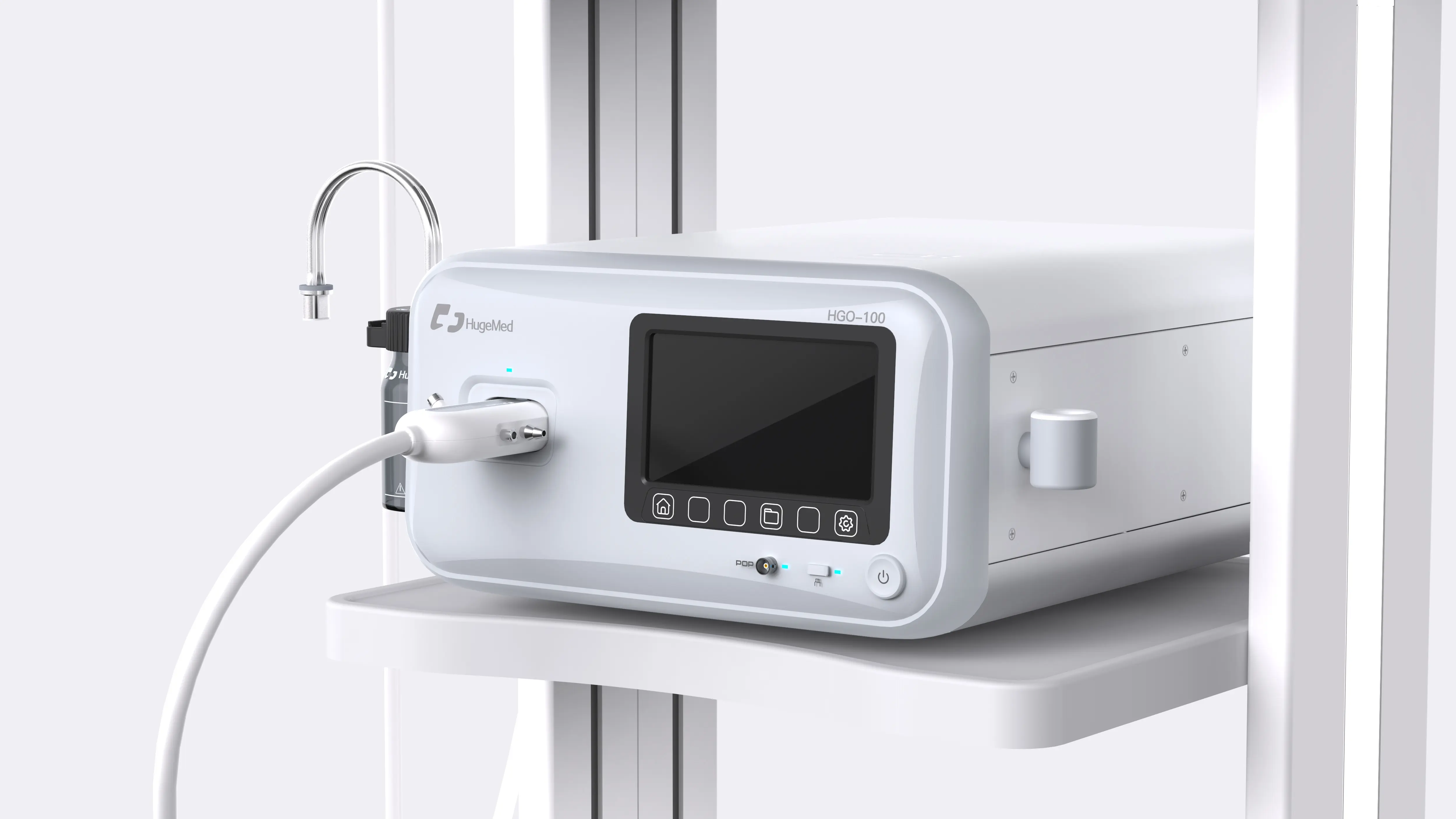 基于品牌愿景“成为一次性内窥镜行业领导者”的前提下,赋予产品自身的品牌识别性特征,极具张力的线条在产品正面延展开来,让产品简洁大方,又具有医疗产品的柔和美感。弧线特征成为品牌识别性特征,这一元素在产品线上得以延续,HugeMed的品牌元素从此映入用户眼帘。